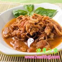 美国《医药日报》10月16日报道,《临床内分泌与代谢会杂志》刊登丹麦一项新研究发现,喝红葡萄酒有助于增加脊柱骨密度,有益骨质疏松症治疗。 研究业已证实,红葡萄酒、葡萄和坚果中的天然化合物白藜芦醇有利于增加好胆固醇(高密度脂蛋白)水平,进而降低心脏病风险。丹麦奥胡斯大学医院完成的最新研究结果显示,白藜芦醇还有助于提高代谢综合征男性患者脊柱骨密度。研究认为,白藜芦醇可作为骨质疏松症的一种可行性治疗选择。 玛丽·尤尔·奥斯特鲁普博士及其同事对66名男性中年代谢综合征患者进行了为期16周的实验研究。参试患者被随机分为3组,每天分别注射两次白藜芦醇或安慰剂。两个实验组每次注射500毫克或75毫克白藜芦醇,参照组每天注射两次安慰剂。结果发现,与对照组相比,每天注射500毫克白藜芦醇的实验组参试者,脊椎骨密度高出2.6%,骨碱性磷酸酶(BAP,骨形成标记物)增加16%。 奥斯特鲁普博士表示,研究首次揭示了白藜芦醇作为抗骨质疏松症药物的潜在用途。研究发现,该化合物可刺激新骨细胞生长。其关键原因是,白藜芦醇的抗炎特性可以防止骨质流失。 红葡萄酒和西红柿酱烧鱿鱼的做法![]() 材料鱿鱼1公斤,清洗干净,生西红柿酱1罐(700克),红葡萄酒250毫升,新鲜柠檬汁2汤匙,橄榄油1汤匙,蒜1头,切碎,现磨黑胡椒1茶匙,辣椒粉1/2茶匙,干九层塔1茶匙,羊乳干酪屑30克 做法1.将鱿鱼身上的触须切下,将鱼身切成约1.5厘米厚的圈,备用。2.在平底锅里,将生西红柿酱、红葡萄酒、柠檬汁、橄榄油、黑胡椒、辣椒、九层塔和羊乳干酪屑拌匀,用中低火炖30分钟左右,使红葡萄酒里的酒精蒸发,并且各种调味料充分融合。 3.将鱿鱼圈和触须倒进锅里,继续小火慢炖20-30分钟,时常搅拌。鱿鱼如果鼓起且更加不透明,就表示熟了。不要用高火或者炖的时间更长,否则鱿鱼很容易变得象橡皮一样嚼不动的。