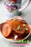 摘要: 原料: 山药1根,蓝莓果酱100克,清水100ml,冰糖50克,淡奶油100ml,盐1/4茶匙(1克) 做法: 1.山药去皮,冲洗干净,切成小段; 2.放入盘中,大火蒸20分钟,直至山药变软,用筷子戳一下,中间没硬芯就可以了; 3.小锅中倒入清水,加入蓝莓果酱和冰糖,用大火...